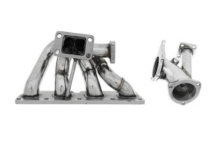 Der TurboWorks-Abgaskrümmer besteht aus 100 % Edelstahl. Er verfügt über einen Anschluss für Wastegate mit Lochabstand 45x45 mm und einem Durchmesser von 38 mm.