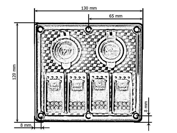 Schalter EIN-AUSx5, 1xZ, 2xUSB 3,1A, 2xB 15A Blau