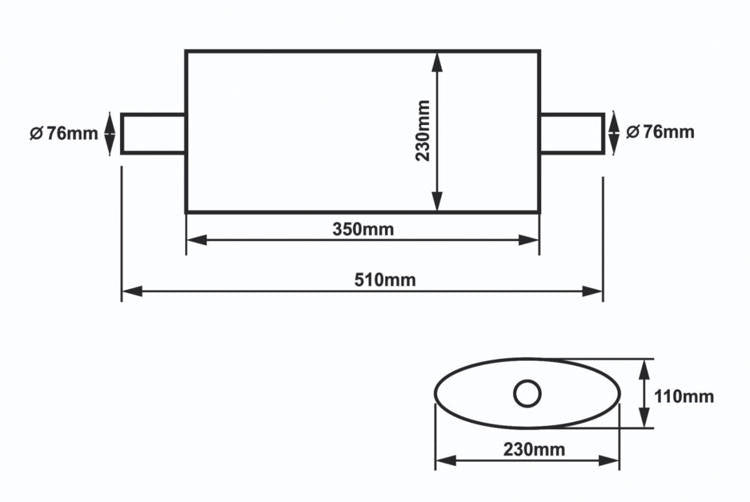 Center Muffler 76mm SLIDE 304SS 350mm
