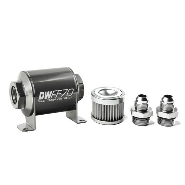 DeatschWerks Universal in-line fuel filter 10 micron AN8 70mm