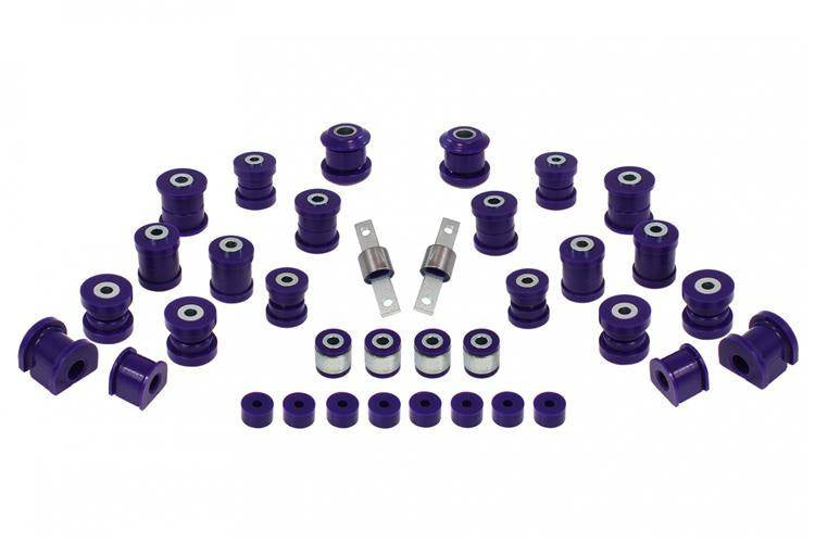 W skład kompletu wchodzą: Tuleje wahaczy przednich, tuleje wahaczy tylnych ,tuleje stabilizatorów przednich i tylnych , łączników, tuleje amortyzatorów.
