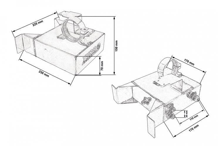 TurboWorks universal fuel tank. Made entirely of aluminum. 2L capacity.